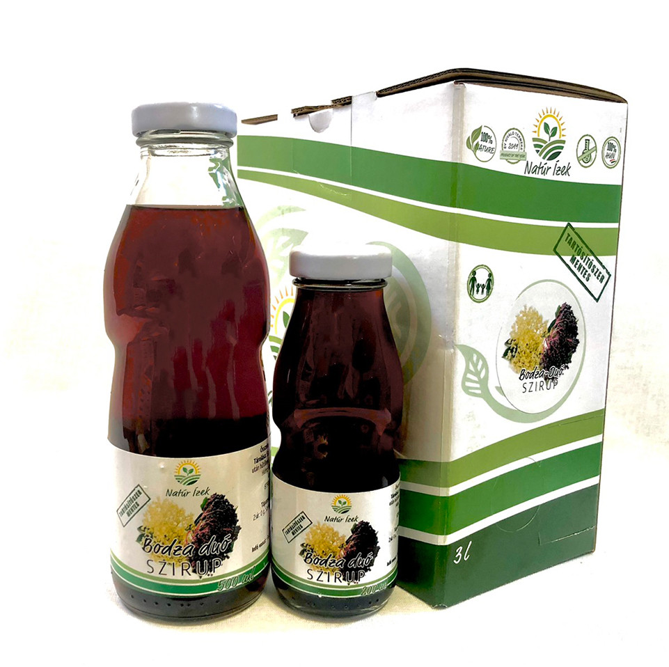 A bodza népi gyógyászati hatása A fekete bodza virága köhögés- és fájdalomcsillapító, immunerősítő és izzasztó hatású. Jellegzetes illatú. Nagyanyáink gyógyító teakeverékeinek elengedhetetlen alapanyaga. Bogyója enyhén hashajtó, magas flavonoid, vas, kálium, kálcium, magnézium tartalmú. A benne található C-vitamin tartalma duplája a citrusfélékhez képest. Tartalmaz még fontos ásványi anyagokat és mikroelemeket is. Összetevők Víz, cukor, bodzavirág, bodzabogyó, citromlé. Ajánlott felhasználása Limonádéba cukor helyett javasoljuk, vízzel vagy szódával hígítva, koktélokba adagolva is fogyasztható. Süteményekre öntetként, illetve cukor helyett alapanyagként is felhasználható.