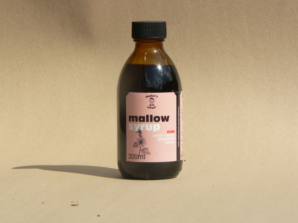 Kitűnő minőségű alapanyagokból, hagyományos kézműves módszerrel készült gyógynövény szirup, speciális pasztőrözéssel tartósítva. Összetevők:Fehér mályva (althaea officinalis10gr/l) vizes oldata, cukor, eper (30%), citrom (10%), citromsav. Nem tartalmaz tartósítószert és színezéket. 200ml.