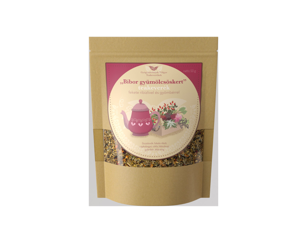 Ennek a gyümölcsös élvezeti teánknak frissítő íze mellett kiemelkedő antioxidáns tartalma is jelentős. A benne lévő hat gyógynövény néhány kiemelt hatása: fekete ribizli -> magas antocián tartalom, érfalra gyakorolt kedvező hatás csipkebogyó -> antocián és gyümölcssav tartalom hibiszkusz -> magas antocián, gyümölcssav tartalom cékla -> magas antocián tartalom akácvirág -> magas flavonoid tartalom gyömbérgyökér -> erőnléti állapot növelő Az 50 grammos visszazárható tasak kb. 20 csésze tea elkészítésére elegendő. Mindennap fogyasztható.