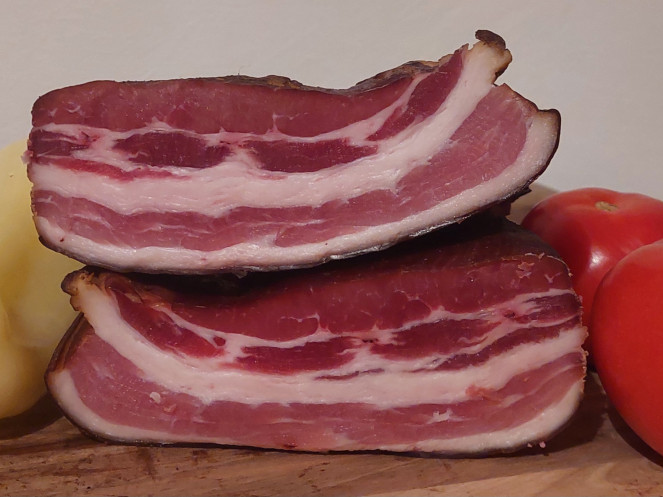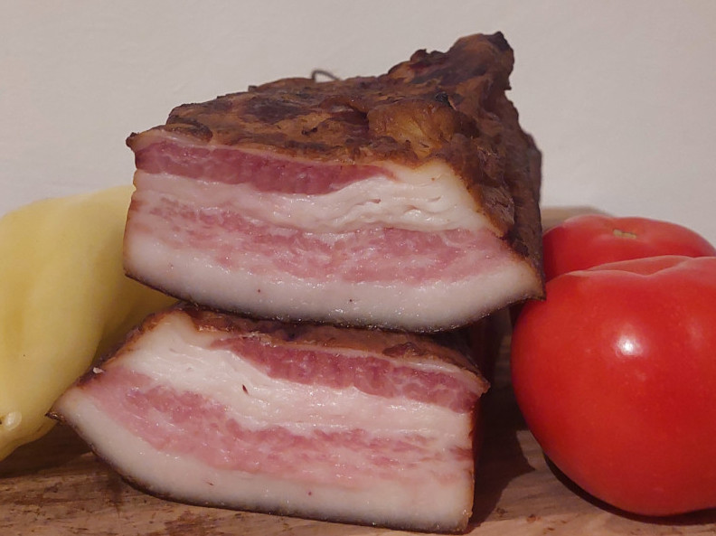 Az ár a pontos súly függvényében vátozhat! Rendelhető 0,5kg és 1kg mennyiségben. Összetétel: 100% sertéshús, só, természetes füst. Tárolás 0-15°C között. Termékeinket a ”nagymamák” több mint fél évszázados tapasztalata és receptje alapján állítjuk elő, különös figyelmet fordítva az ízekre, füstölésre és fűszerezésre. Termékeink kíváló minőségűek, hiszen gondos odafigyeléssel, hagyományos, háztáji technológiával – ipari adalékoktól mentesen – kerülnek a piacra. Érdeklődni Farkas Bence 06 30 282 8741 telefonszámán.