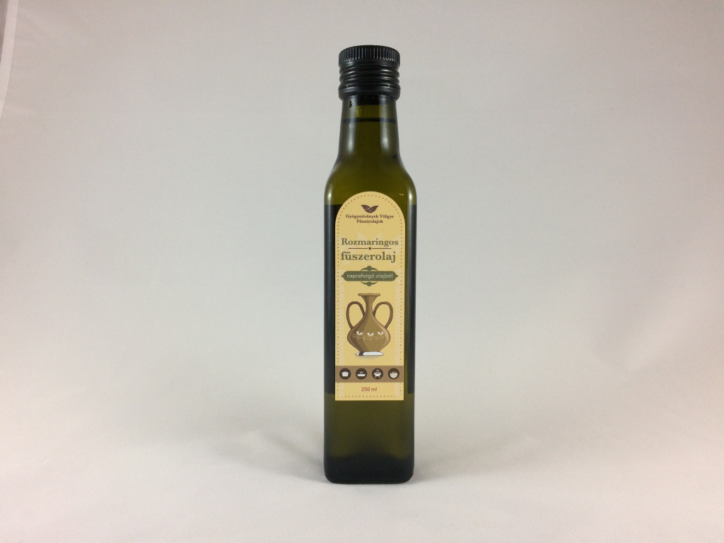 Minőségi napraforgó olajból. Főzéshez, 180 °C alatti sütéshez és grillezéshez, húsok pácolására ajánljuk. Salátákhoz is kiváló. Az olajban megjelennek a rozmaring avasodást késleltető és antioxidáns tulajdonságai. 250 ml olajkiöntős üvegben.