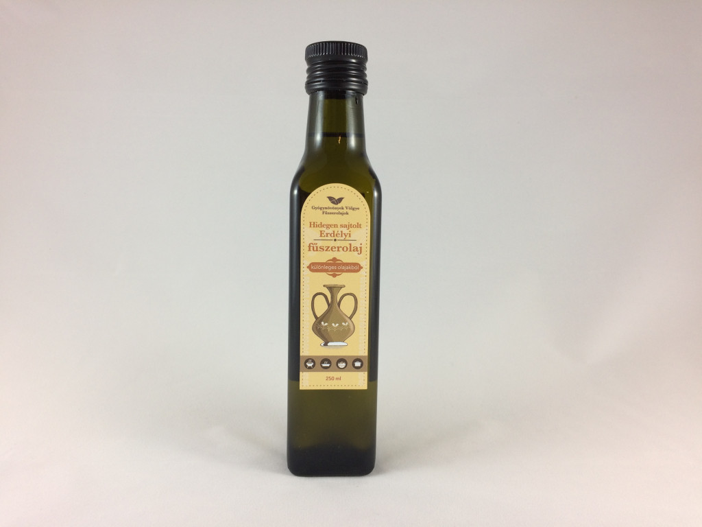 Hidegen sajtolt, különleges olajkeverékből. Elsősorban magyaros ételek készítéséhez ajánljuk. Salátákhoz, húsok pácolására, 180 °C alatt grillezéshez raguk készítéséhez, főzéshez, sütéshez is kiváló. A bio olajkeverékben 1:8,6 az omega 3 és 6 zsírsavak aránya. 250 ml olajkiöntős üvegben.
