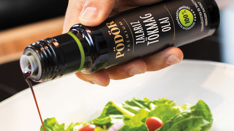 Zalariz tökmagolaj, az ősz sötétzöld íze Zalariz tökmagolajunk prémium minőségű, válogatott magyar tökmagból kézzel sajtolva. Nemcsak saláták, rántották és édességek pompás fűszere, hanem az egészégnek is nagy barátja. A tökmagban található értékes zsírok a hidegsajtolás során egyenesen átvándorolnak ebbe a sötétzöld olajba. Érdekesség kedvéért elmondjuk, hogy a Pödör körülbelül 30 tök 2,5 kg magját használja fel 1 liter tökmagolaj készítéséhez. A hidegen sajtolt zalariz tökmagolaj használatáról A tökmagolaj minden kétséget kizáróan első helyen áll a kulináris különlegességek sorában, így az egyik legnépszerűbb étkezési olaj. Sötétzöld szín, intenzív, diós illat - a Zalariz tökmagolaj így csurran ki az üvegből. Nagyon sokoldalú, finom szinte minden salátavariációhoz, vagy leveles zöldsalátákra dresszingként. Kiváló továbbá hidegkonyhai készítményekhez, sütőtökleves, krumplisaláta, vagy tojásrántotta tökéletesítésére, de sütemények, torták tésztáját és krémjét is egyaránt megbolondítják ezzel a varázserejű zöld olajjal. Egy csepp tökmagolaj a vaníliafagylatra igazán izgalmas! Összetevők 100% olaj tökmagból. Átlagos tápértékadatok 100g termékben: Energia3693kJ /898kcal Zsír 99,6g amelyből telített zsírsavak 17,1g egyszeresen telítetlen zsírsavak 33,9g többszörösen telítetlen zsírsavak 48,6g Szénhidrát 0g amelyből cukrok 0g Fehérje 0g Só 0g Nyomokban diót, mogyorót, földimogyorót és szezámmagot tartalmazhat! Omega zsírsavak Omega-3 0,2 g Omega-6 22,4 g Omega-9 34 g Tárolás Bontatlanul, hűvös, száraz, napfénytől védett helyen 14-18 hónapig tárolható. A szavatosság pontos megőrzésének dátuma az üvegen feltüntetésre kerül. A felbontást követően javasolt 3-4 hónapon belül felhasználni, hogy az értékes alkotóelemek ne veszítsenek magas minőségükből. Szűretlen olaj, ezért fogyasztás előtt rázzuk fel! A Zalariz tökmagolaj jótékony hatásai A Zalariz tökmagolaj közel fele többszörösen telítetlen zsírsavakat tartalmaz. Ezek a zsírsavak tágítják az ereket, az immunitást erősítve ezáltal. Az antioxidánsok a sejtek őrei. Védik a sejteket és a sejtmembránokat a szabad gyököktől. Az E-, A-, B1-, B2-, B3-, C- és D-vitaminok együttes ereje jótékony hatással bír az emberi szervezet különböző részeire. Így például ezek a vitaminok csökkentik a magas koleszterinszintet, s ezzel az érelmeszesedés okozta betegségek, illetve stroke veszélyét.