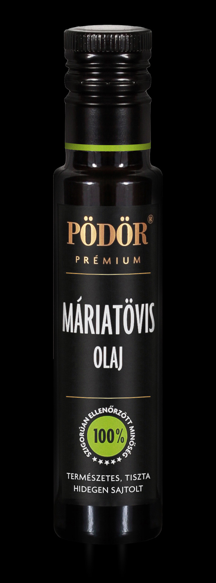 A ragyogó aranyszínű máriatövis olajban rengeteg értékes tápanyag van. Gyógyhatását már az ókorban is nagyra tartották. A máriatövis magjából sajtolt máriatövis olaj máig kedvelt eleme az igényes konyháknak. A Pödör máriatövis olaja 100 százalékban természetes, szűretlen és finomítatlan.A máriatövis magját a legnagyobb gondossággal, hidegen sajtolják, hogy a benne lévő tápanyagok megmaradjanak, ezért olyan egészséges ez a növényi olaj. A linolsav, valamint az A- és E-vitamin mindennel ellátja az emberi szervezetet, ami ahhoz kell, hogy egészséges és vonzó maradjon.