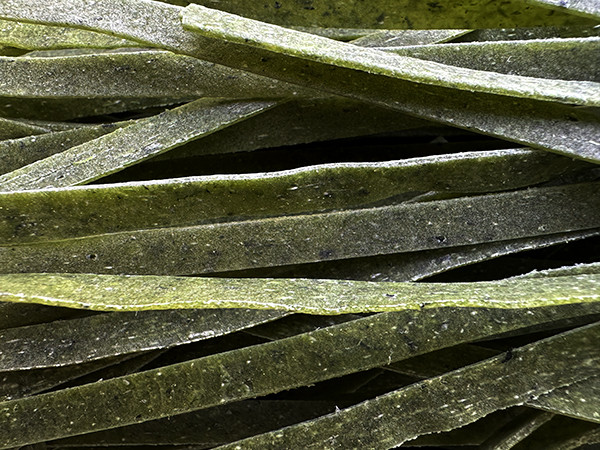 Termék neve: Spenótos – Szélesmetélt Kiszerelés: 500g – 4-6 főre Zöldségtartalom: 38% spenót – A spenót gazdag tápanyagokban, például A-, C-, E-, K-vitaminokban, valamint ásványi anyagokban, mint a vas, kálcium, kálium és magnézium. Ezek a tápanyagok támogatják a szív- és érrendszer egészségét, segítik az emésztést, javítják a látást, és hozzájárulnak az immunrendszer erősítéséhez. Egészségügyi előnyök: Magas antioxidáns tartalom: Védelmet nyújt a szabadgyökök ellen és támogatja az általános egészség megőrzését. Magas rosttartalom: Segít az emésztésben és hosszantartó jóllakottság érzetet biztosít. Vitaminokban gazdag: Erősíti az immunrendszert és javítja az emésztőrendszer működését. A spenótos szélesmetélt tésztánk több, mint 10 évnyi fejlesztéssel vált azzá, amit ma megvásárolhatsz. Ez idő alatt rengeteg tesztgyártásra és tapasztalatszerzésre volt lehetőségünk! Kóstold meg ennek gyümölcsét! Tésztaforma: A spenótos szélesmetélt hosszú és széles formája különleges és látványos megjelenést kölcsönöz az ételnek. A széles felület jól tartja a szószokat és ízeket, így minden harapásban gazdag ízvilágot élvezhetünk. Sokféleképpen felhasználhatjuk: szaftos szószokkal, zöldségekkel, húsokkal vagy akár sajttal. Gyártási technológia: Jobb íz és textúra: A lassú, alacsony hőmérsékleten való szárítás megőrzi a tészta természetes ízét és rugalmasságát, ami jobb minőségű és élvezetesebb ételélményt nyújt. Tápanyagmegőrzés: A gyengéd szárítási folyamat csökkenti a tápanyagok, például a fehérjék és a komplex szénhidrátok lebomlásának esélyét. Rövidebb főzési idő: A kíméletesen előállított tészta gyorsabban fő meg, ami időt takarít meg a konyhában és frissebb, “al dente” állagot eredményez. Hosszabb eltarthatóság: A lassú száradás egyenletesen eltávolítja a nedvességet, ami hozzájárul a tészta hosszabb eltarthatóságához anélkül, hogy adalékanyagokat kellene használni. A spenótos szélesmetélt főzési ideje: Hagyományos módon: Mindössze 2-3 perc forrásban lévő vízben, majd 2-3 perc pihentetés fedő alatt. Tökéletes választás a gyors és egyszerű, ugyanakkor finom és tápláló ételek kedvelőinek. Készítsd el együtt az étellel! Vegyél elő egy nagy serpenyőt, de akár wok serpenyőben is elkészítheted. Receptvideóinkban számtalan példát mutatunk arra, h