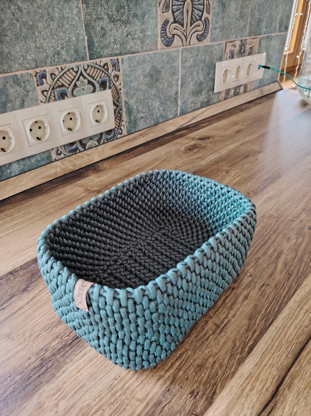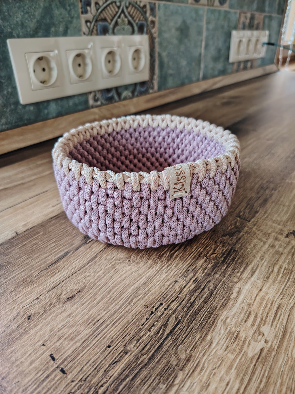 Rattan mintàs horgolt tàroló. Mosógèpben 30fokon mosható( mosó zsàkban ajànlott) Méretei: 25x16x10cm
