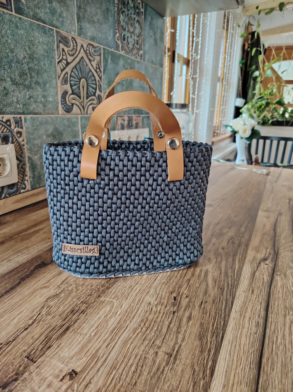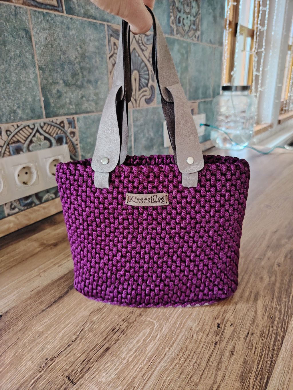 Rattan mintàs horgolt tàska. Bőr kèzi fogóval ès bőr alappal. Màgnez zàrral belül Lapos polièszter fonalból kèszült így kevèsbè koszolódik ès a tisztítàsa is egyszerűbb. Mérete:18x24x10cm Fül hossz: 10cm