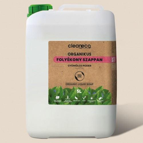 Folyékony krémszappan, mely gyengéden tisztítja kezét és megóvja bőrét a kiszáradástól. ECOCERT minősítésű alapanyagokból készült. Felhasználási javaslat: Szennyeződés mértékével arányosan kell a szert használni. Amennyiben a tisztítandó felület nagymértékben szennyeződött a tisztítási folyamat megismételendő. Figyelmeztetések: Tárolás: eredeti csomagolásában, száraz helyen, szélsőséges hőmérsékleti viszonyokat kerülve. Bőrrel való érintkezés után mossuk le bő vízzel. Ha szembe kerül, bő vízzel azonnal ki kell mosni, és kérjünk orvosi tanácsot. Lenyelése esetén itassunk 1-2 pohár tejet (vizet) és gondoskodjunk friss levegőről. Nagy mennyiség lenyelése esetén azonnal orvoshoz kell fordulni és a flakont vagy a címkét az orvosnak meg kell mutatni!Nézd meg ezt a kis videót rólunk! https://egy.hu/video/latogatas-a-cleaneco-es-a-bibo-termekek-gyartobazisain-video-1422