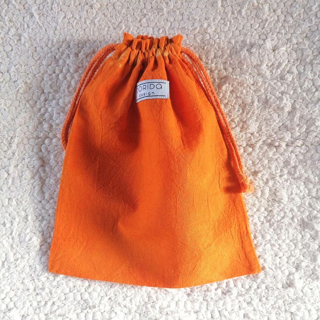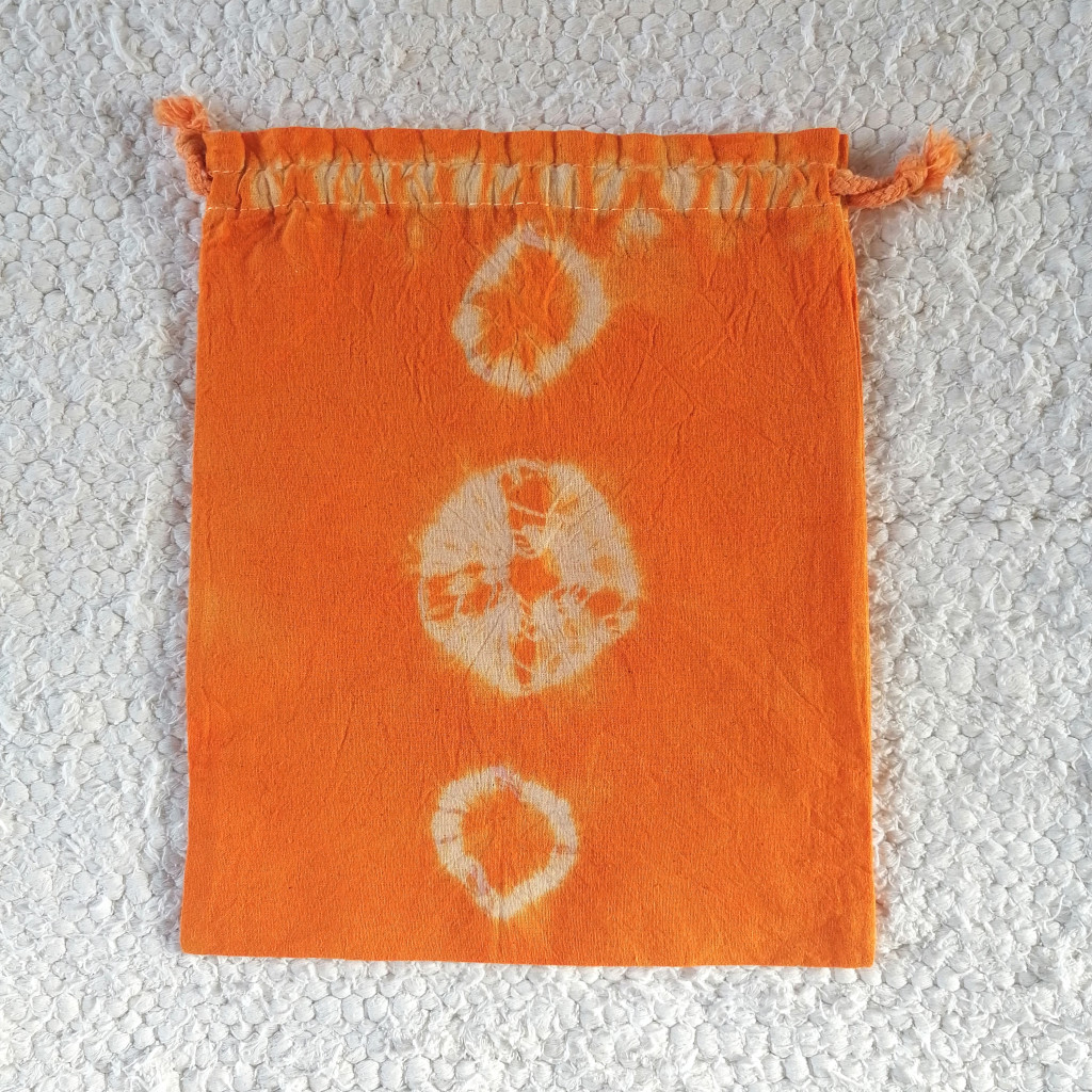 Naranccssárga - bézs, batikolt ökozacskó vagy textil zsák.