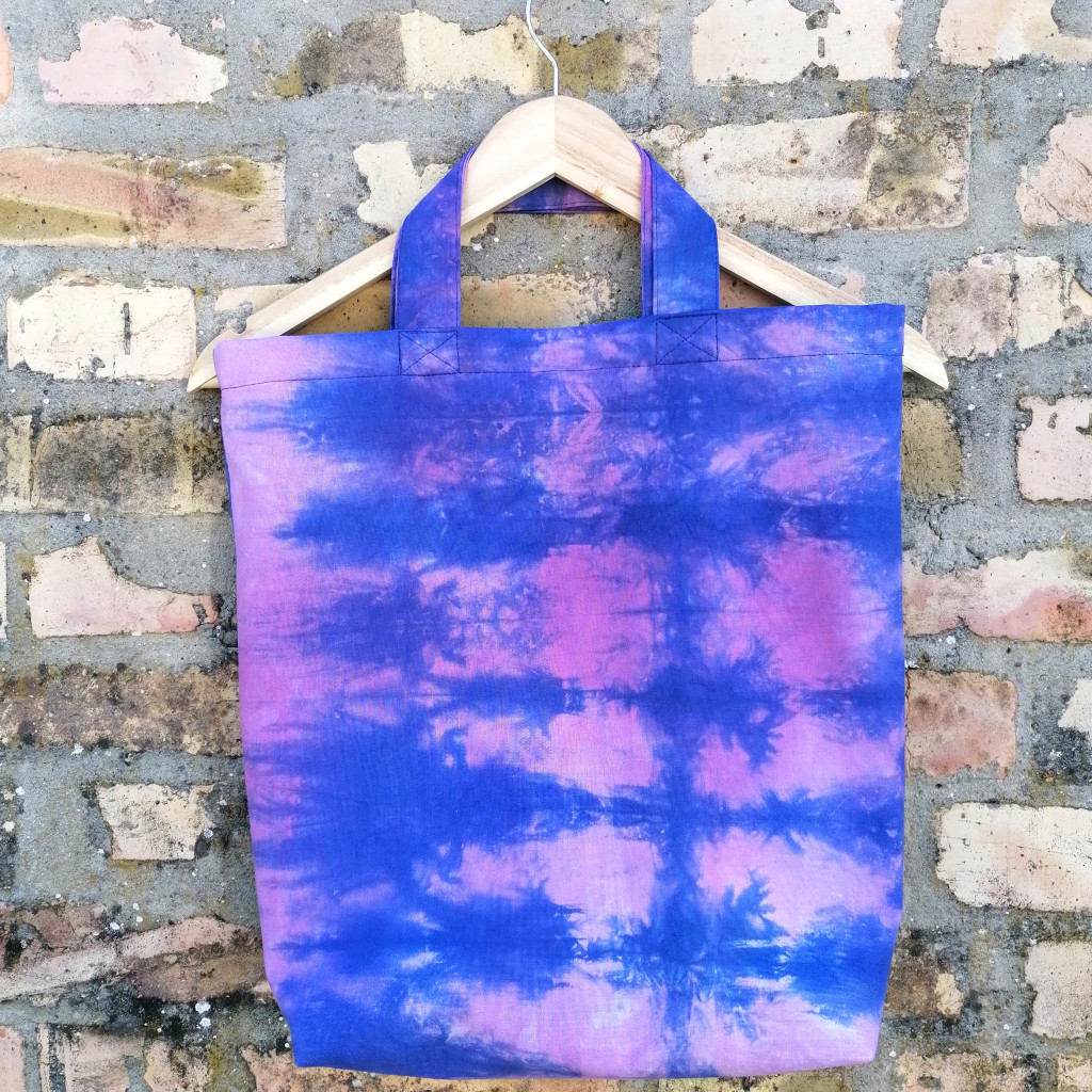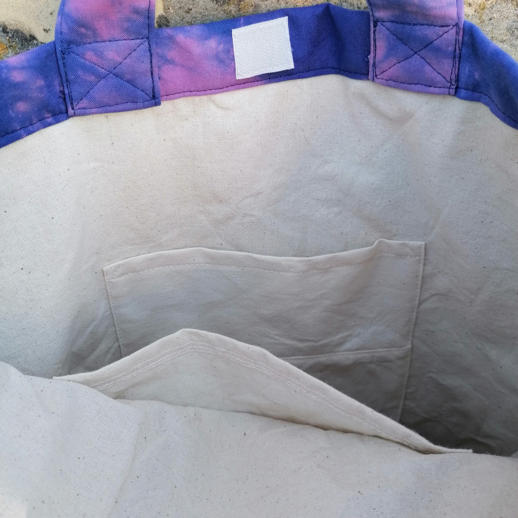 Egyedi, batikolt mintás, bélelt textil kézitáska, jó tartású pamutvászon alapanyagból.