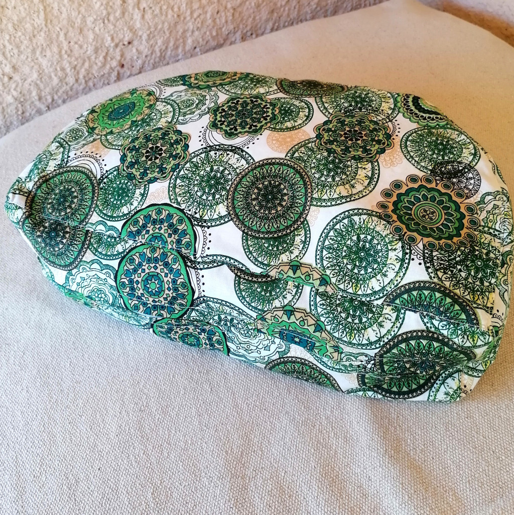 A meditációs párna mérete: Átmérő: 42 cm, a keskeny rész 28 cm, magasság 13 cm.