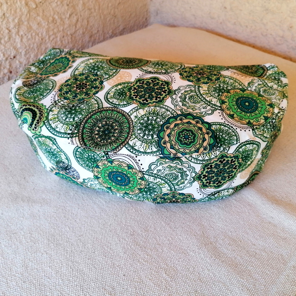 Mandala mintás "félhold" vagy félkör tönkölypelyva jógapárna, meditációs párna, design lakásdekoráció.