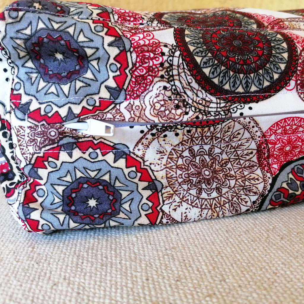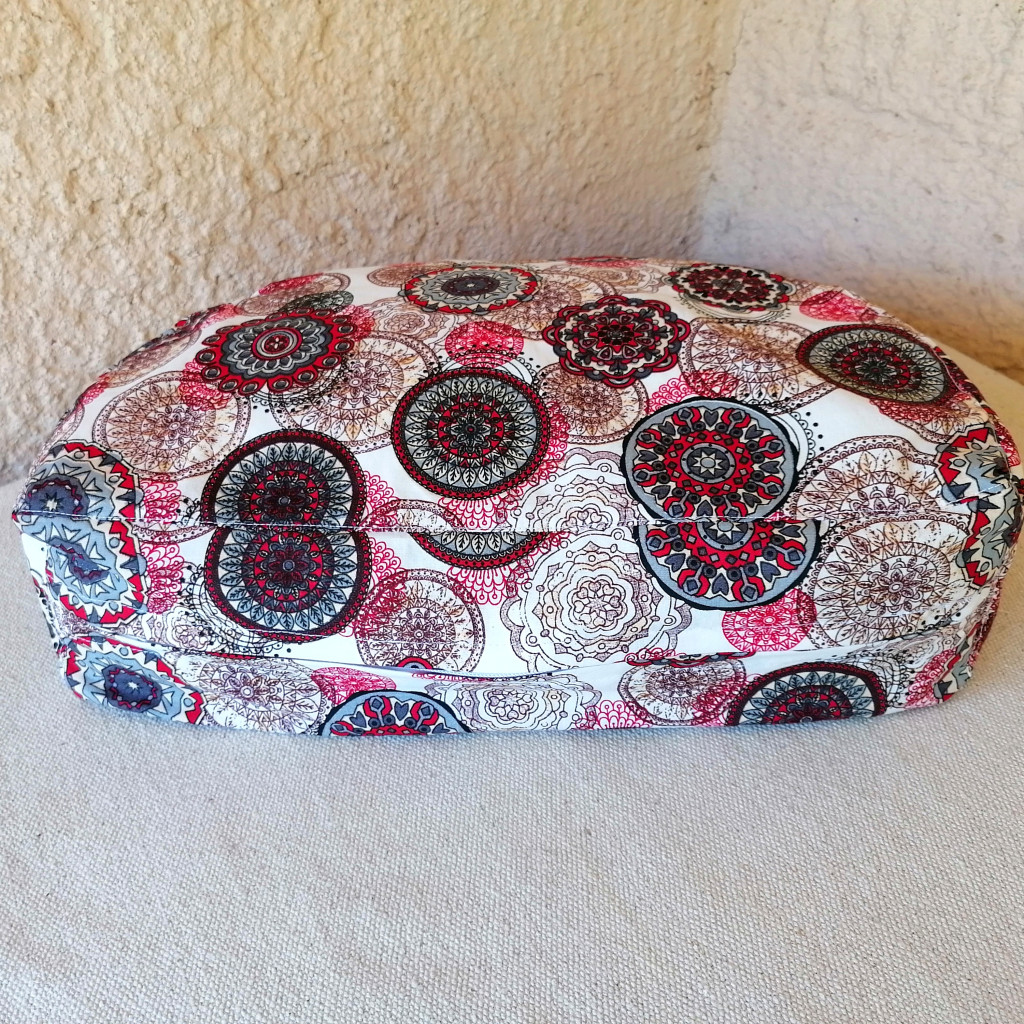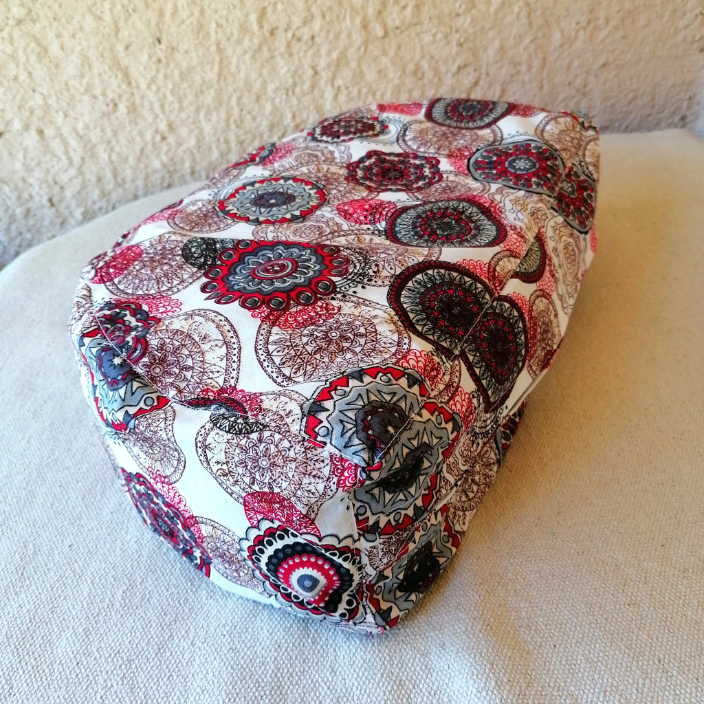 Mandala mintás "félhold" vagy félkör tönkölypelyva jógapárna, meditációs párna, design lakásdekoráció.
