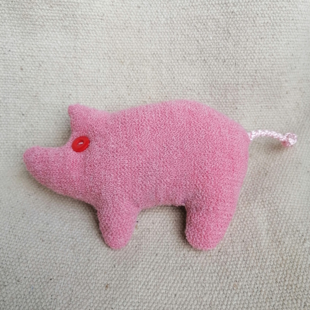 Szerencsehozó malacka újrafelhasznált alapanyagokból.