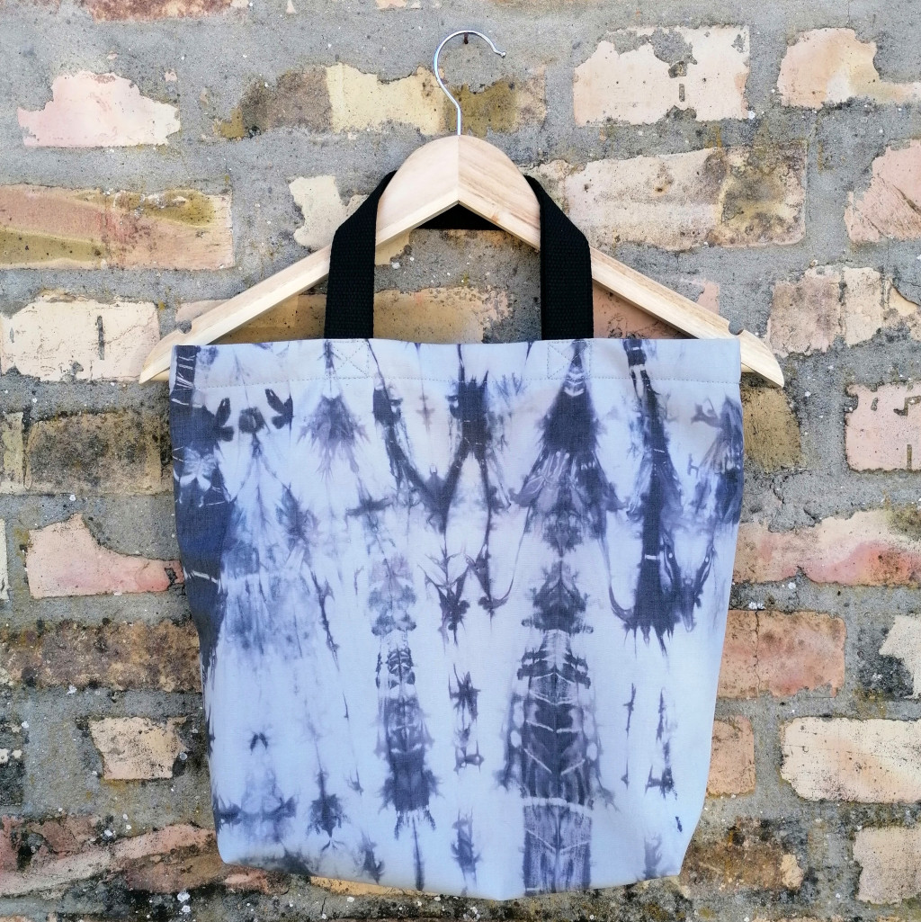 Egyedi, batikolt mintás, bélelt textil kézitáska, jó tartású pamutvászon alapanyagból.