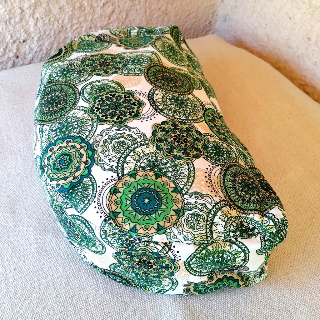 Mandala mintás "félhold" vagy félkör tönkölypelyva jógapárna, meditációs párna, design lakásdekoráció. Praktikus ülőpárna, amely elősegíti az egyenes tartást, kiegyenesíti a gerincet. Dupla huzattal készült, mindkét huzat mosható. Külső huzat: mintás pamutvászon (100% pamut), húzózárral. Belső huzat: 100% pamut - molinó vászon, húzózárral. Töltet: 100% bio tönkölypelyva A tönkölypelyva töltet átszellőztetéssel felfrissíthető. A meditációs párna mérete: Átmérő: 42 cm, a keskeny rész 28 cm, magasság 13 cm. Környezetbarát ajándékötlet.